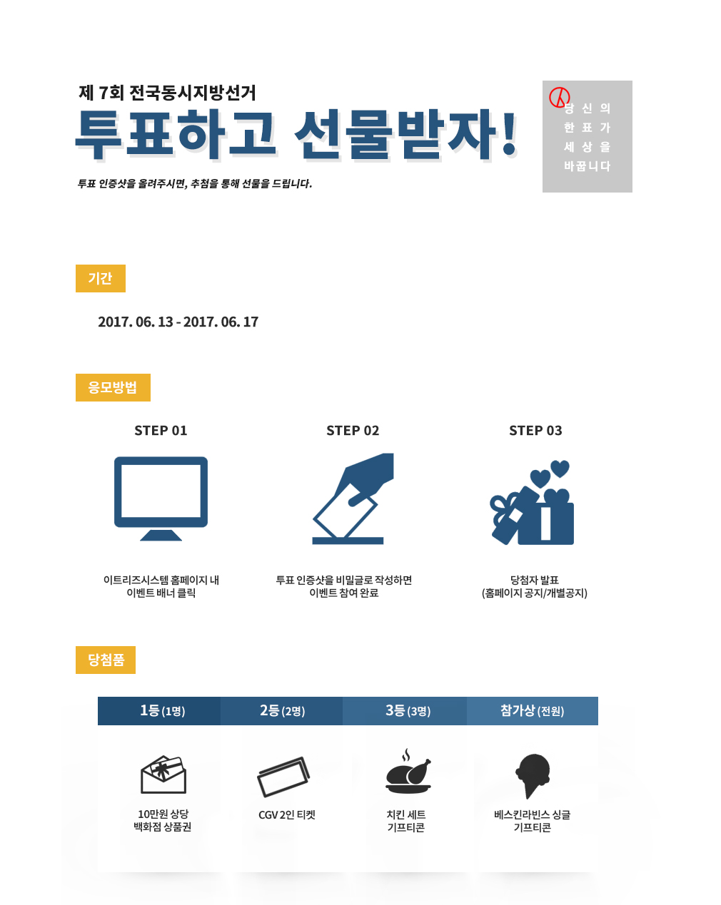 Á¦7ȸ Àü±¹µ¿½ÃÁö¹æ¼±°Å À̺¥Æ® [ÅõÇ¥ÇÏ°í ¼±¹°¹ÞÀÚ~!] 6/13 ~ 6/17